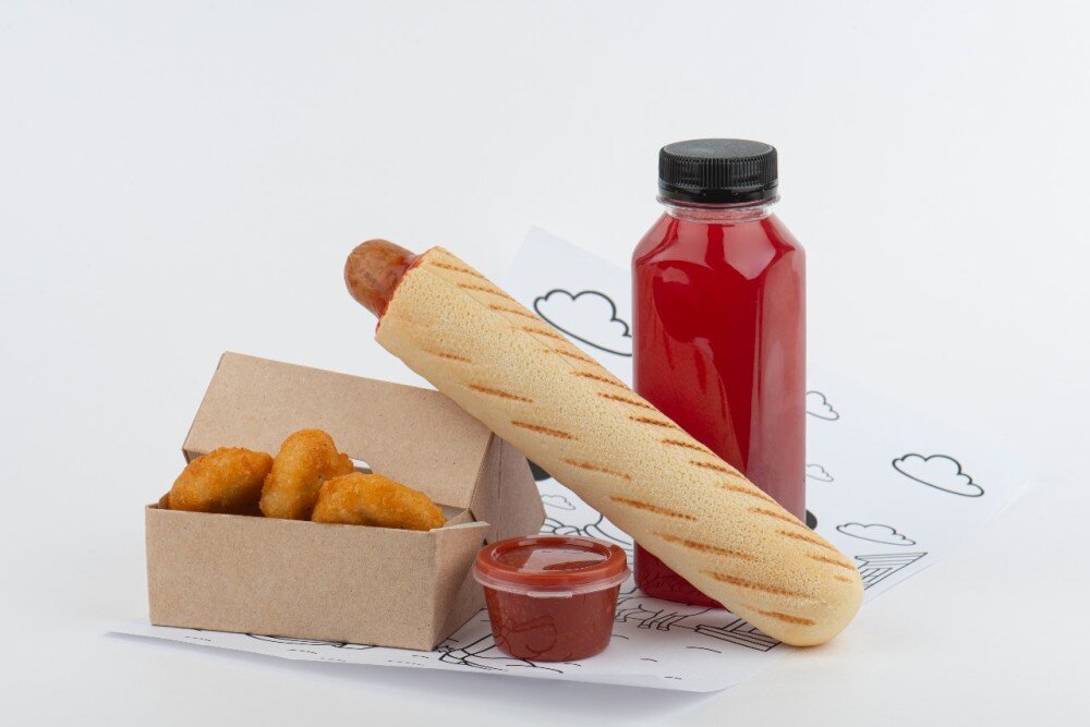 френч дог/наггетсы/морс собственного приготовления 300мл/соус на выбор/фирменная раскраска